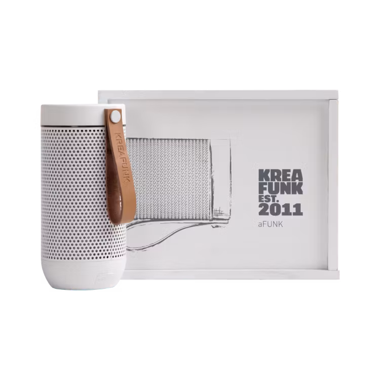 Möt aFUNK från Kreafunk- en rafflande skönhet bestående av flera cirkulära element - och så även ljudet. Bluetooth-högtalaren aFUNK låter dig spela dina favoritlåtar i 360 grader. Tack vare högtalarens True Wireless Stereo- funktion kan du med en enkel knapptryckning koppla ihop två aFUNK högtalare på samma gång.