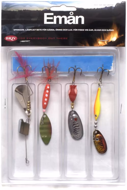 Dragsats med 4 spinnare av varierade modeller. Lämpligt bete för gädda, öring, och lax för fiske vid älvar och sjöar.