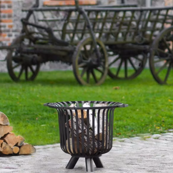 Eldkorgen är gjord av råstål; följaktligen kan dess färgnyans skilja sig från produkten som visas på bilderna. Det är en naturlig egenskap hos stål och det har ingen negativ inverkan på produktens funktionalitet eller stabilitet.