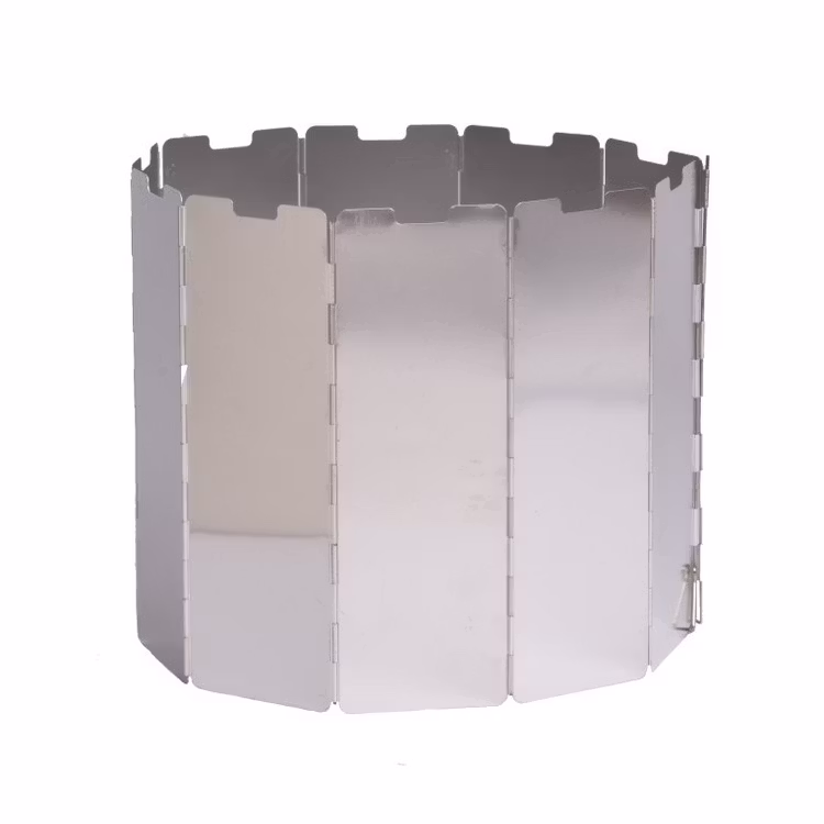 Portabelt vindskydd för eldstad tillverkad i aluminum.