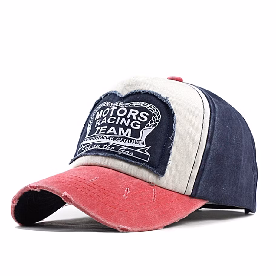 Blå/röd baseballkeps med texten "Motors Racing Team" i sliten stil och vintage-look. Den är tillverkad i ett slitstarkt material som kommer att hålla säsong efter säsong.