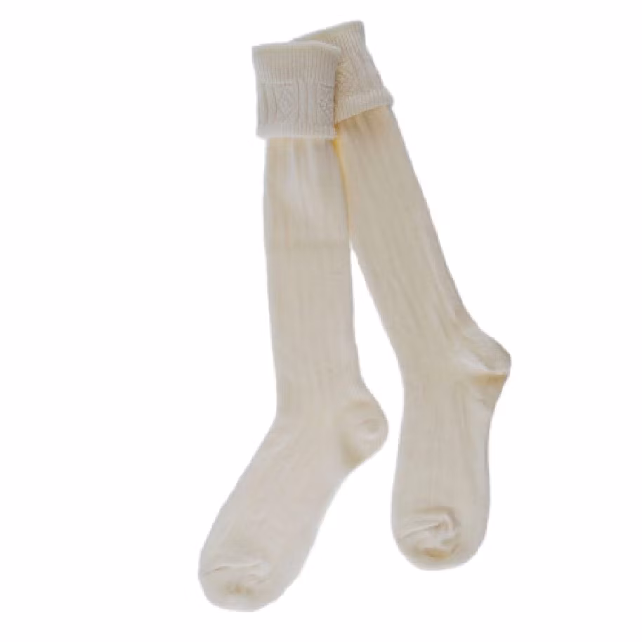 Extralång ribbad creamfärgad strumpa till exempelvis kilt.