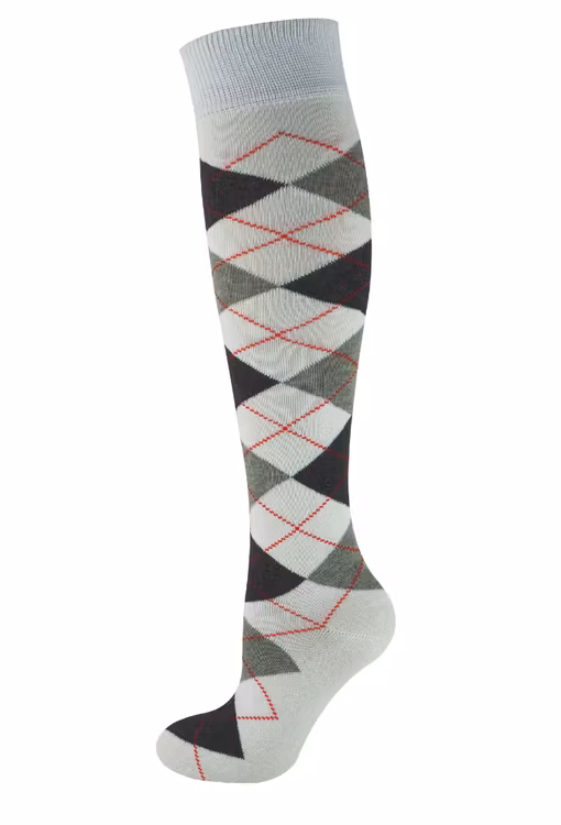 Elegant argyle vit knästrumpa till dina hickorybyxor.