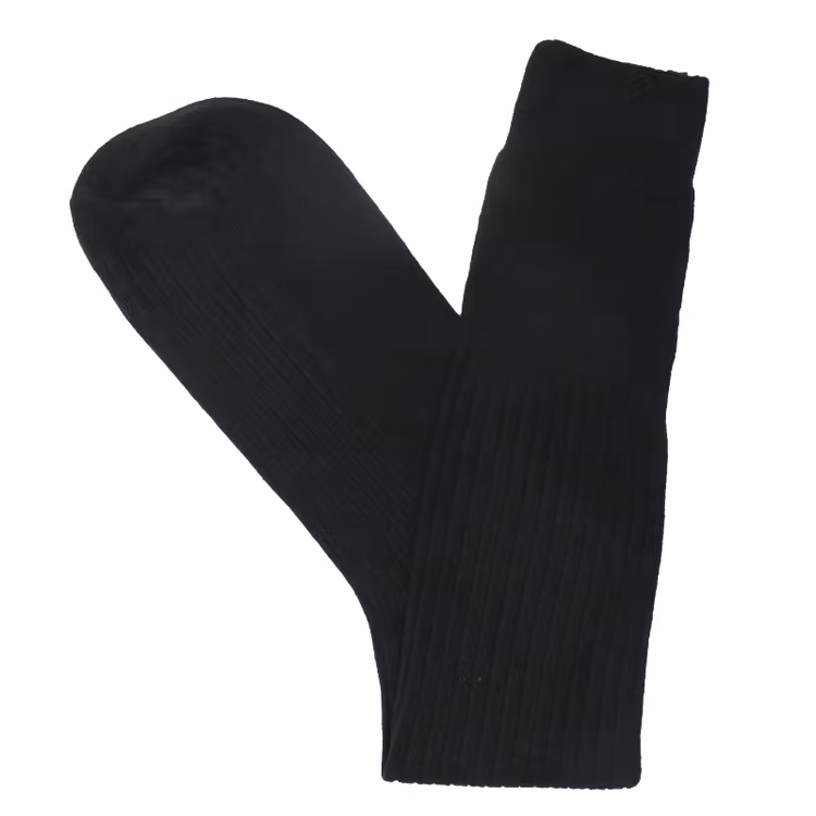 Snygg, lite tunnare, ribbade långa strumpor. Produktmaterial: 100% bomull. Storlek: 39-45. Färg: Svart. Längd: ca 39cm. Tvättas i 40°.