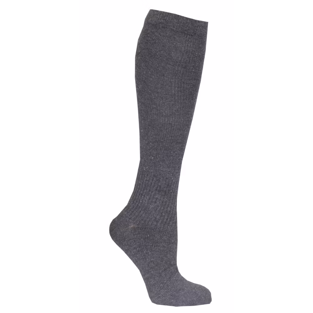En antracit, ribbad, stödstrumpa i ull från Zent. Stödstrumpan har graderad kompression (11-14 mm HG) som ger extra energi åt benen.