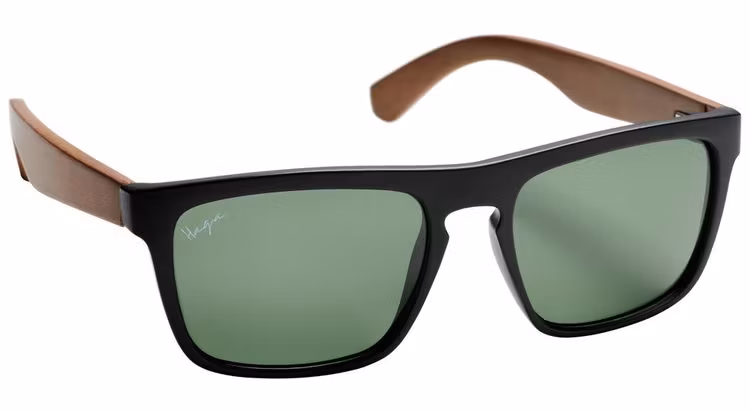 Tampa polariserade solglasögon från Haga Eyewear med matt svart båge, skalmar av bambu och G15 lins. Levereras utan fodral.