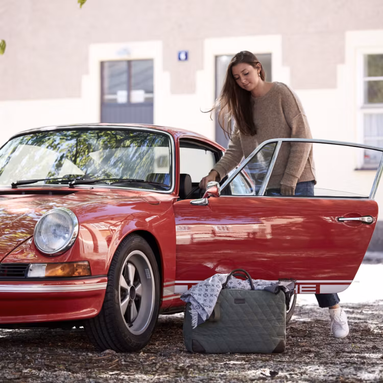 En grön kviltad weekendväska med detaljer i konstläder och ett vackert rutigt innerfoder. Väskan har en avtagbar, reglerbar axelrem, samt dubbla handtag upptill. Insidan är fördelad i två mindre fack med plats för t.ex. surfplatta upp till 9,8”, samt ett större för övrig packning. På yttre långsida finns ett rymligt fack med ficklock i konstläder..