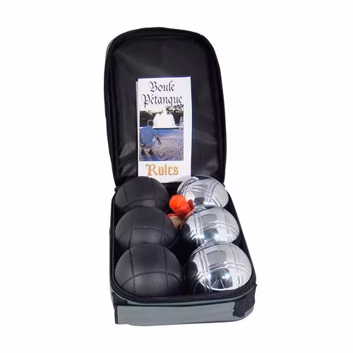 Ett komplett boule set med 6 klot, en lille samt regler packat i en praktisk nylonväska. Lämpar sig för fritidsspel.