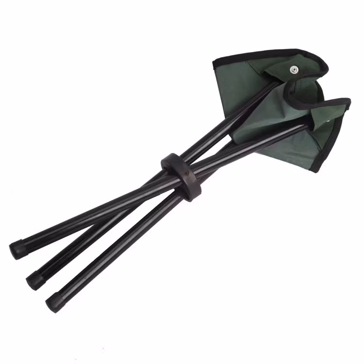Fällbar 3-bensstol som är perfekt för jakt, camping eller outdoor aktiviteter.